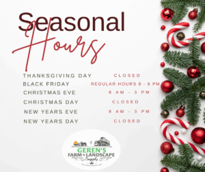 We look forward to seeing you at Geren's Farm and Landscape Supply. We're the one-stop shop for all your animal and landscaping needs.